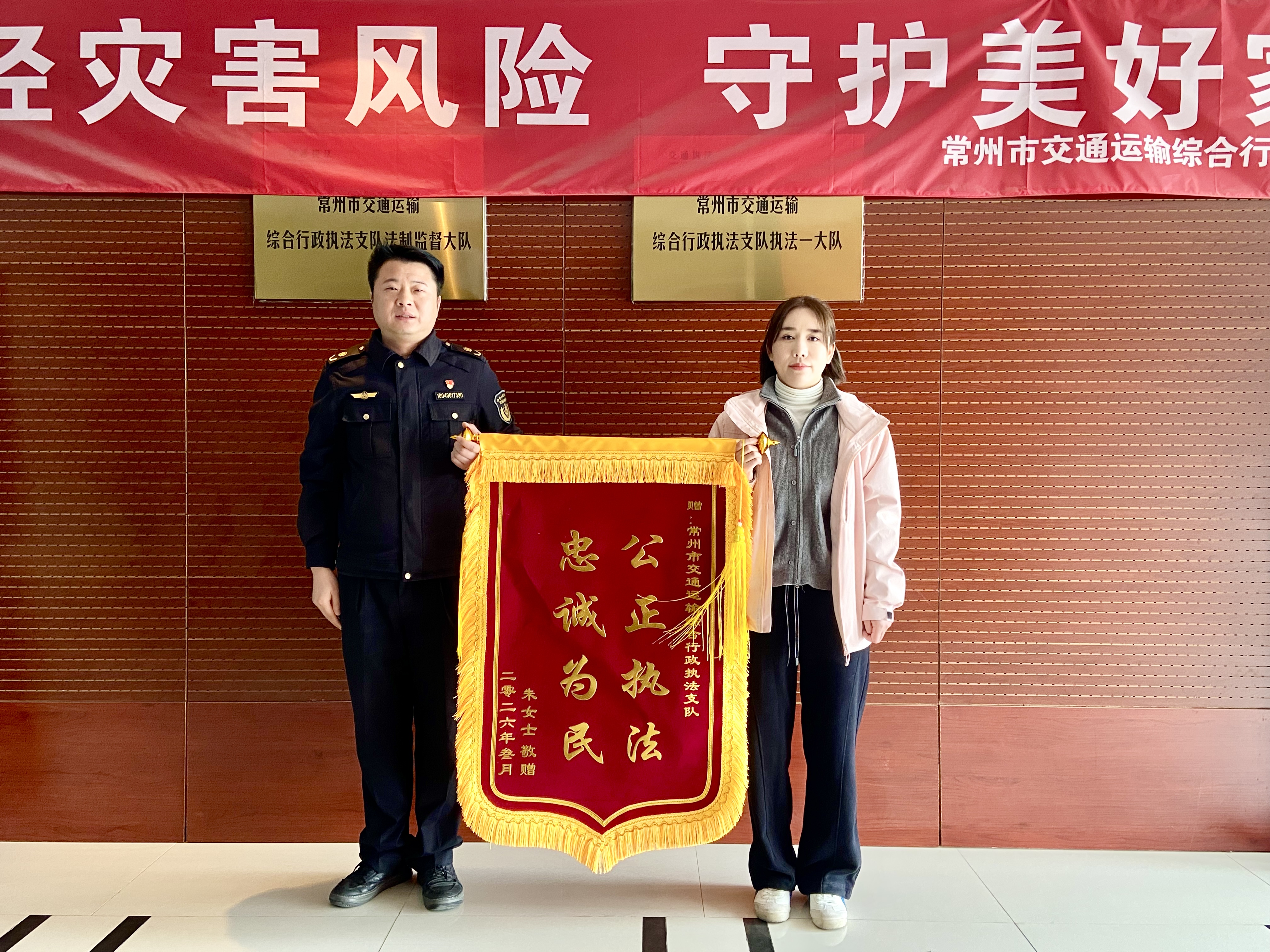 3月6日,常州交通执法部门收到市民朱女士送来的一面印有“公正执法,忠诚为民”的锦旗,感谢执法人员帮她找回遗失手机。