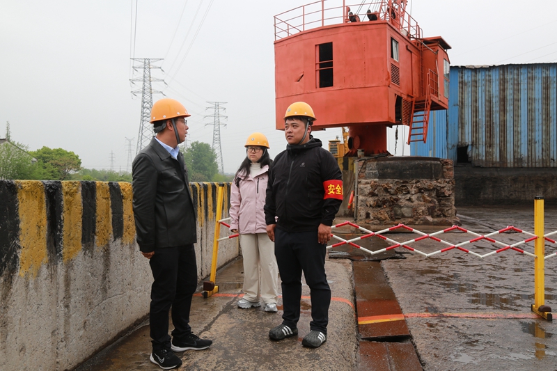 洛阳镇永安建材有限公司紧邻西流河,是一家主要经营黄沙、石子等建材的港口码头企业,共有两个作业泊位,年吊装量约20万吨。调研中,薛飞一行实地查看了码头作业机械、泊位状况和堆场设置情况,详细询问了企业安全生产人员配备、岗位职责和生产经营等情况,听取企业在落实安全生产主体责任过程中的困难、困惑及诉求建议。